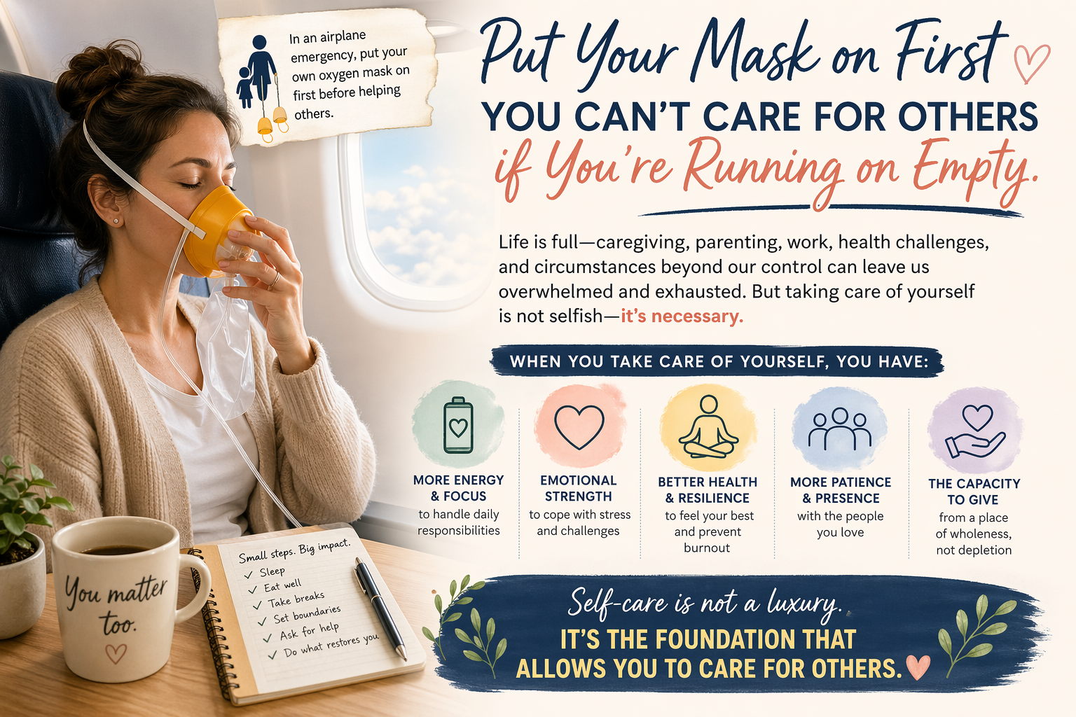 Putting your “oxygen mask” on first is not selfish—it is necessary.